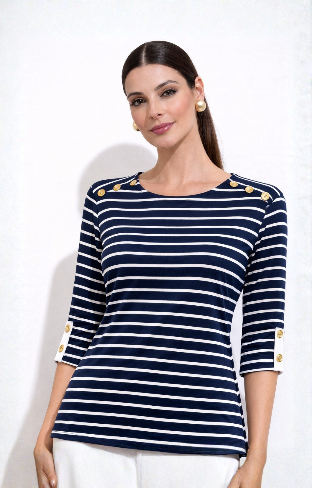 BLUSA ESTILO NAVY NAS LISTRAS: MARINHO E OFF WHITE E OFF WHITE COM PRETO