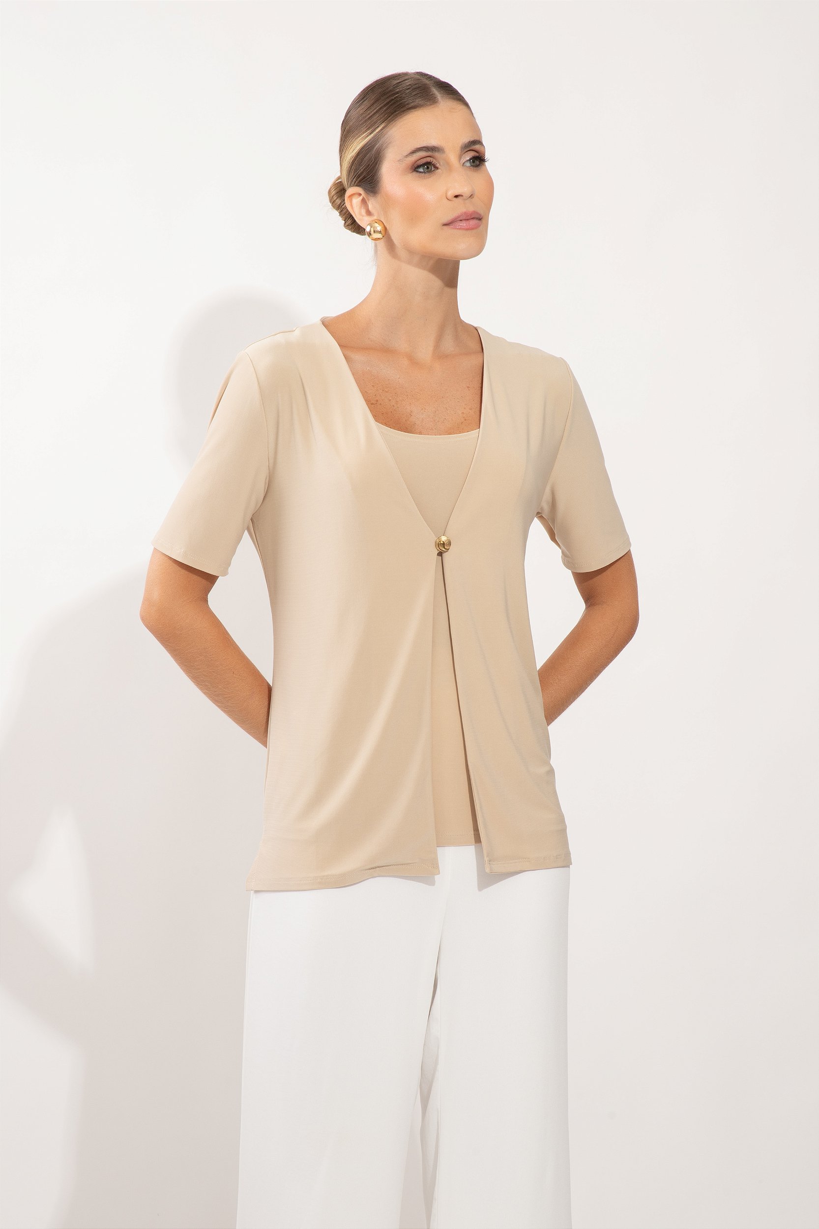 BLUSA ESTILO TWIN SET NA MALHA DE JERSEY COM BOTAO DOURADO