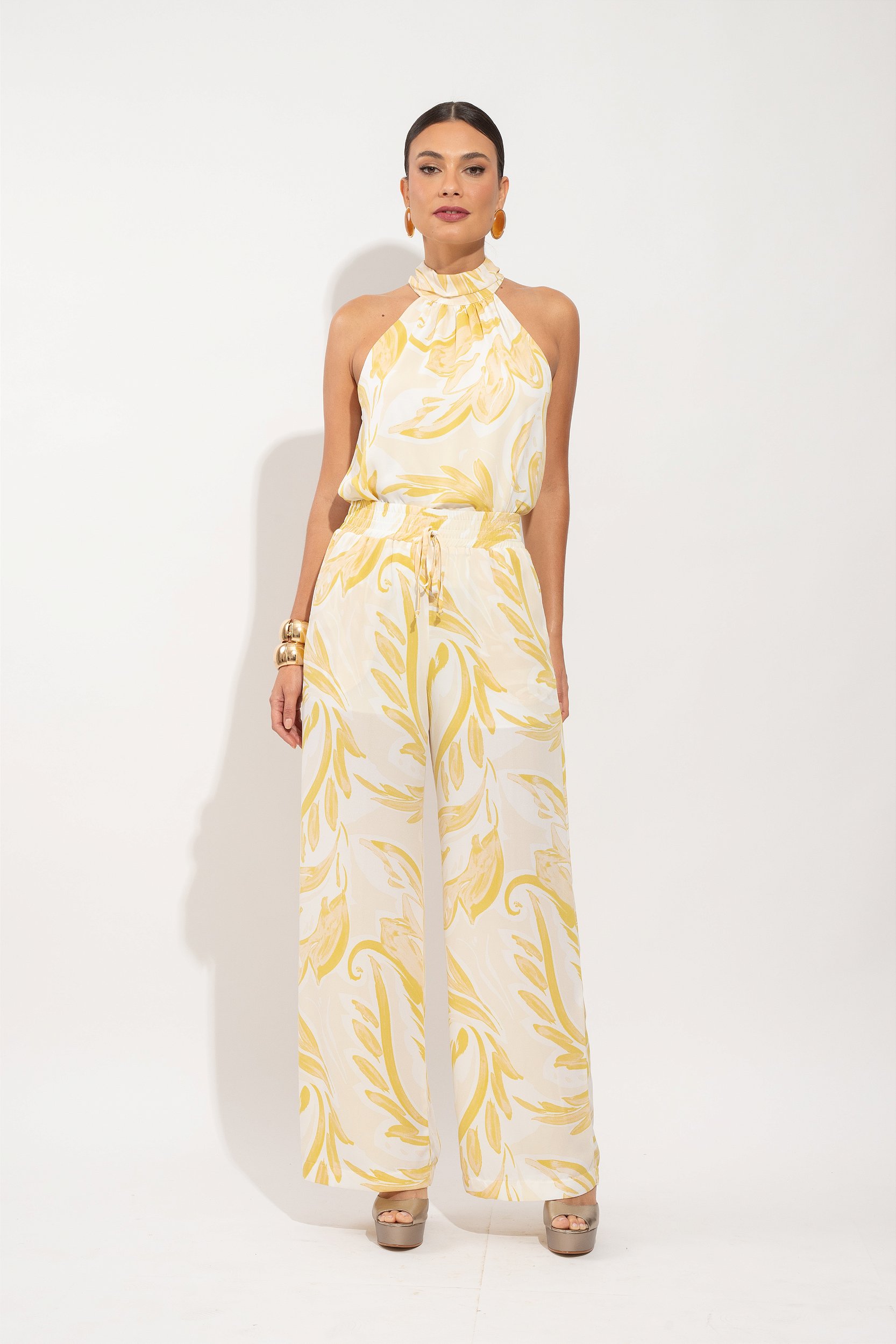 – NA ESTAMPA FLORAL: AMARELO E OFF WHITE