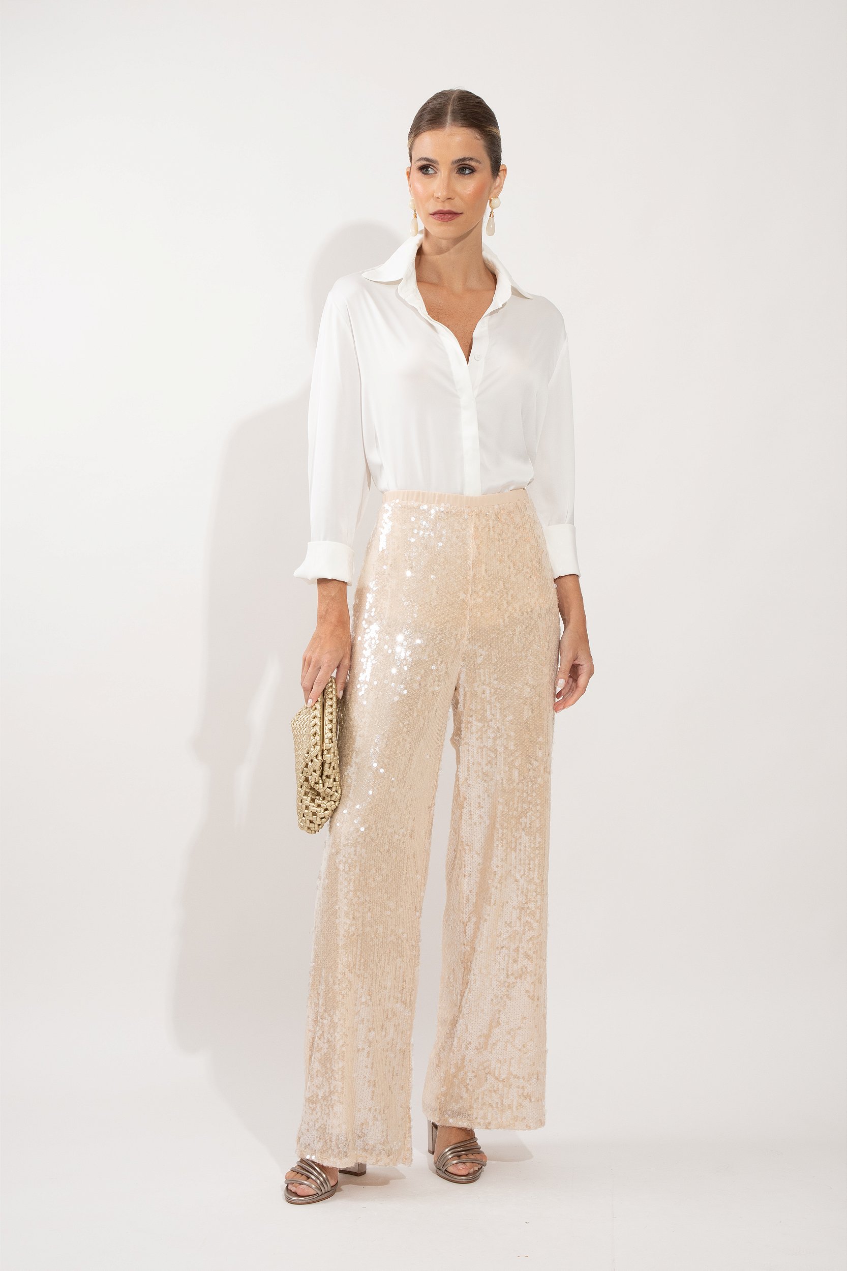 CALÇA EM PAETÊS IMPORTADOS , FORRADA COM CINTURA ALTA