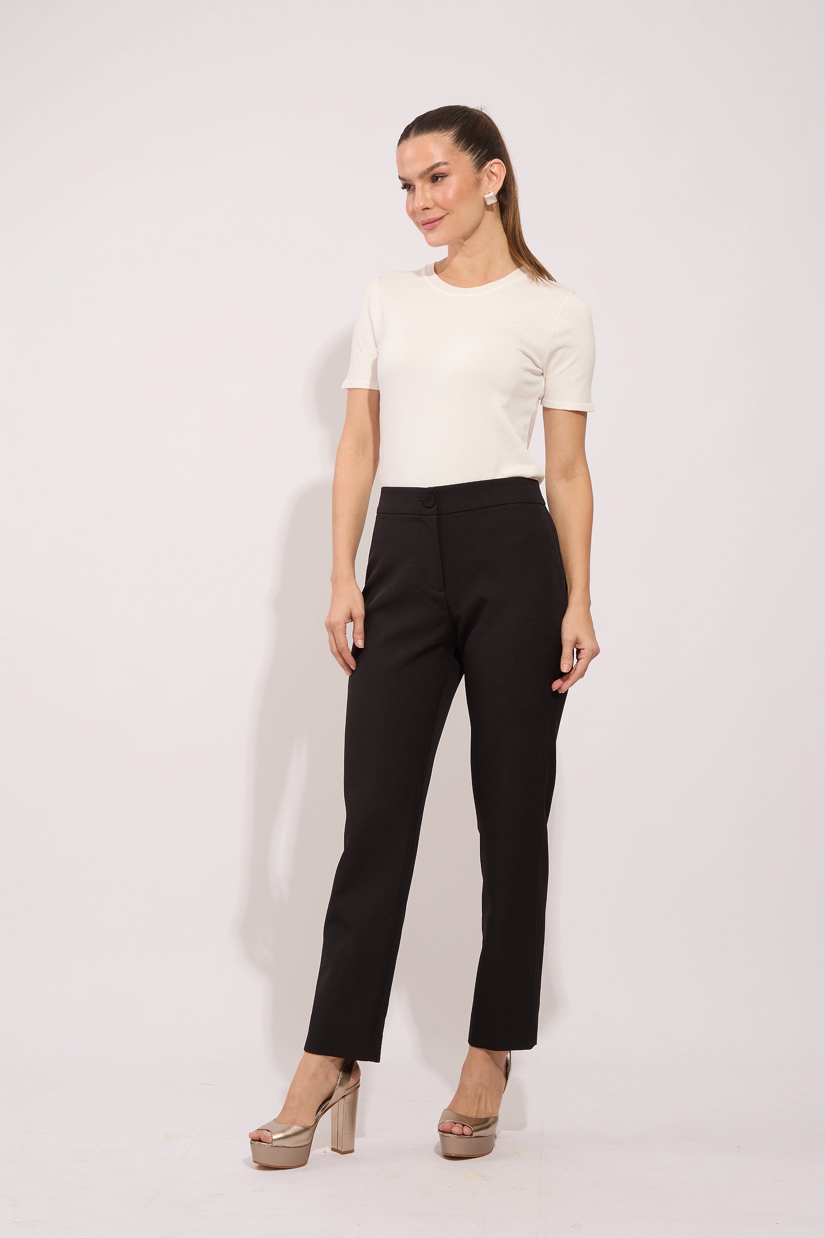 Calça clássica no crepe preto.