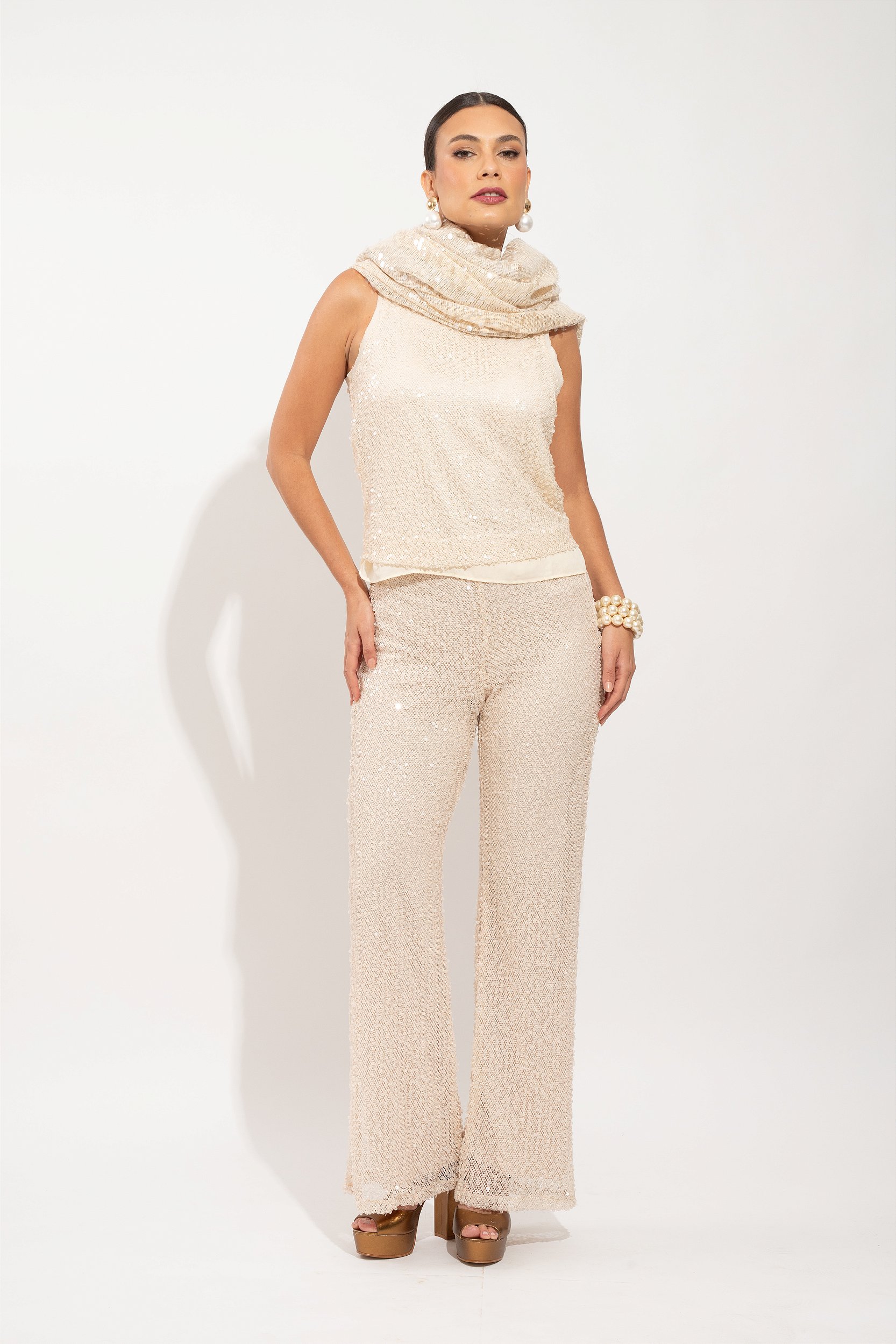 CALÇA NO PAETÊ PEROLADO COM ZIPPER LATERAL E SHORT PROTEÇÃO INTERNO