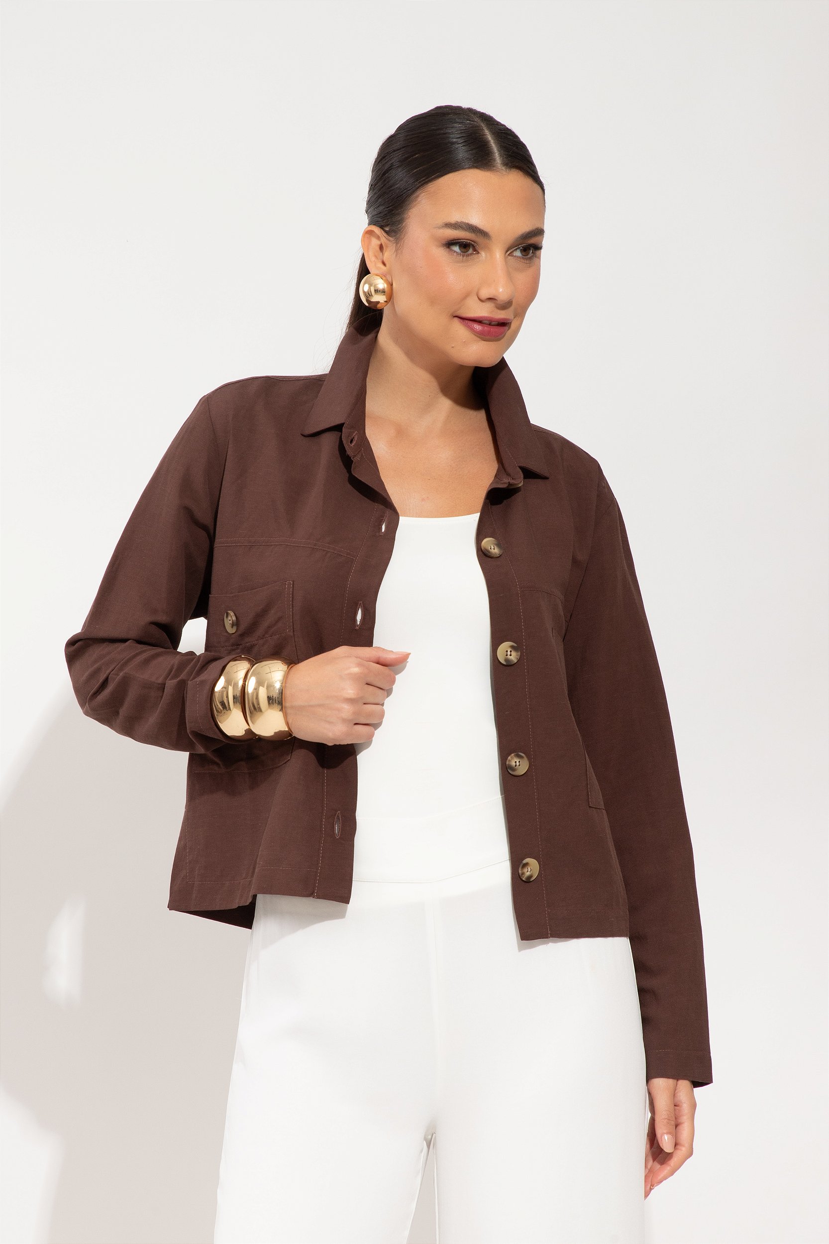 JAQUETA NO LINHO COM BOTÕES DE RESINA – COMPLEMENTO SUPER ELEGANTE E FACIL DE USAR – COMPLETA OS LOOKS COM ESTILO – PERFEITO PARA COMPOR LOOKS DE VIAGENS , TRABALHO E DIA A DIA