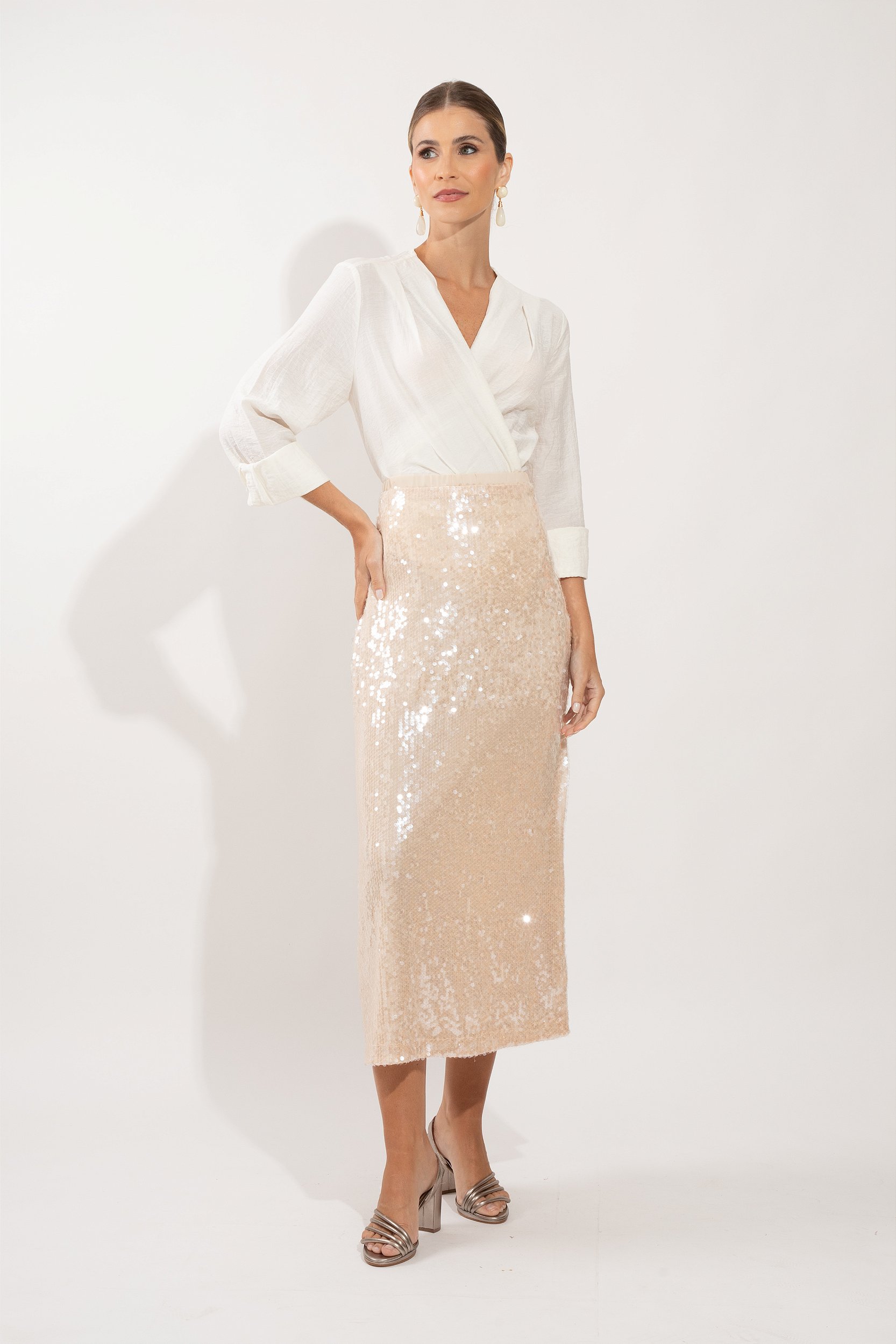 SAIA LAPIS COM COMPRIMENTO MIDI NO PAETÊ IMPORTADO FORRADO